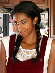 Pretty ebony teen takes off white panty and toys hairy pussy
