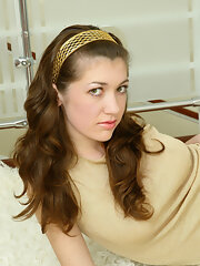 Ayda is sitting and reading on her couch, and feeling horny. She strips naked on the couch, shows off her 34B breasts and touches her hairy pussy. She has fun being naked and natural on the couch.